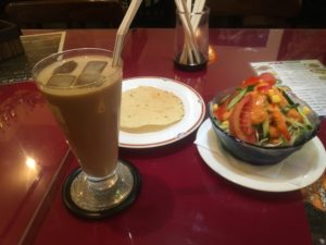 ドリンクもラッシーとチャイの2種類から選択できるので、アイスのチャイにしました。