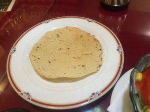 チャイをはじめ、サラダにインドのおせんべい、パパードが付きます。
