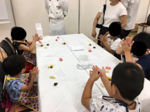 マジパン細工の体験会を始め、今回は洋菓子店のシェフによる飴細工の実演もありました。