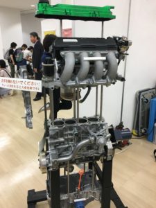 このうち春日部高等技術専門校は、実習で作ったという自動車のエンジンを展示。