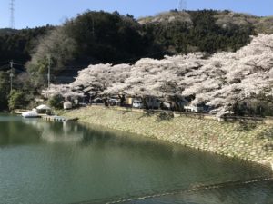 同湖は戦前アメリカで発生した世界恐慌の対策として行われた公共事業のひとつで、1935年に完成した農業用貯水池。当初は山根貯水池と呼ばれていましたが、終戦後に毛呂山町観光協会が「かまきた湖」と呼ぶようになったということです。
