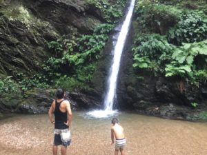 私の先にすでに興じている親子がいたのですが、このように水遊びスポットとしても人気が高いのが宿谷の滝です。