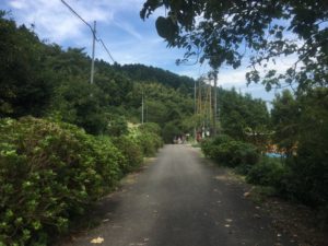そんな桂木地区。山あいにある土地で、道は上に続いているようです。