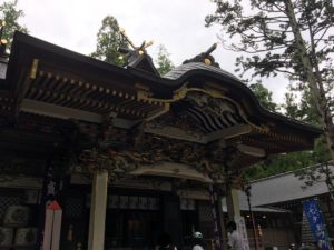 森の中で荘厳な出で立ちの現在の社殿は明治時代の1874年に完成し、権現造を採用した。