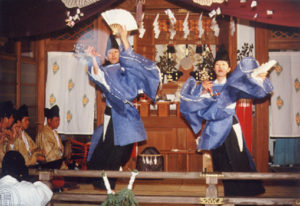 1月1日の元旦祭をはじめ、2月節分や4月3日例大祭、5月2日奥宮祭に数座ずつ奉奏される同神楽。特に元旦に行われる神楽は年が明ける午前0時から3時まで奉奏されるもので、このような例は珍しいという。