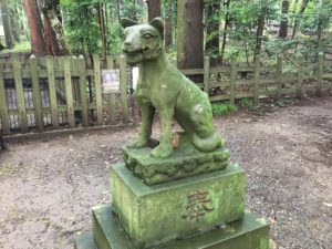 ところで麓の社殿の狛犬は犬だったが、こちらの奥宮では狼を象っている。