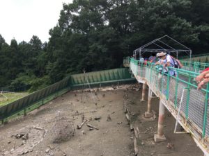 高い通路から見下ろすと多くの猿たちが暮らしているのが見てとれる。