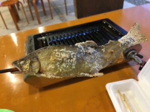 里の魚の代表格、鮎の塩焼きだ。