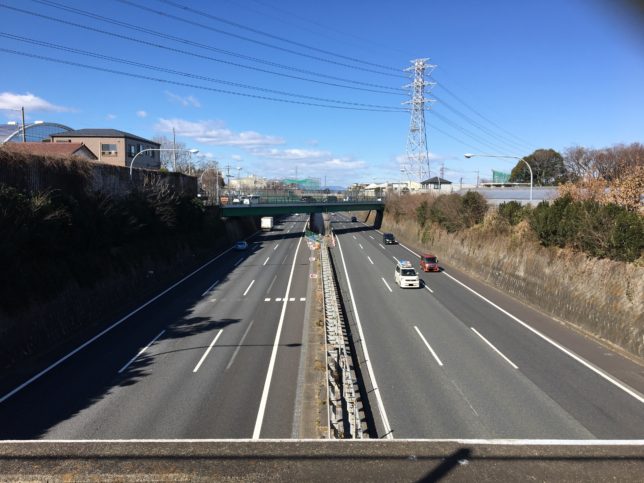 しばらく進むと街を南北に走る関越自動車道の上を渡る。沿道とともに平林寺堀もこの上を渡っていく。