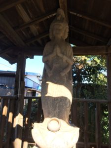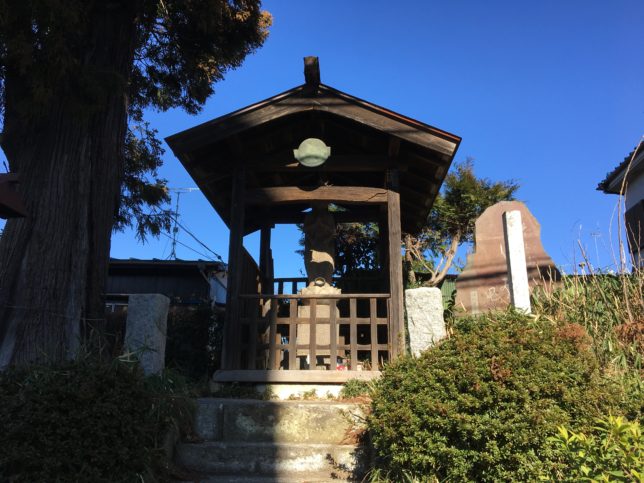 5分ほど歩くと野火止と大和田の町域に達するが、ふと道の脇に目をやると屋根の中に鎮座するお地蔵さんのようなものが見える。