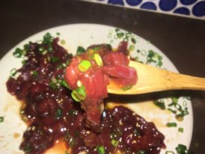 馬肉とはいうものの、マグロのお刺身のような味であまり臭みとかはないですね