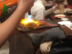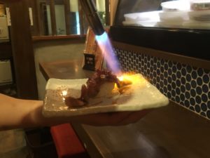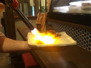 客席の目の前で、店員さんがガスバーナーで焼かれます🔥