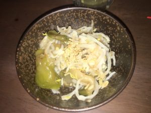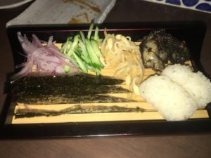 ナムルにご飯に海苔に、あの右上の黒いのはなんだろう?