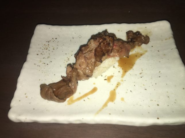 それとせっかく肉寿司のお店に来たので、和牛トロカルビ寿司を1貫注文します