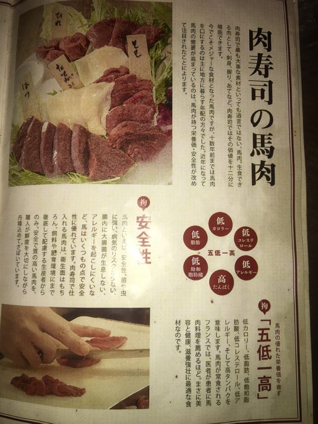 ちなみにこちらのお店、18時までに入店すると、もれなく馬の赤身寿司が1貫無料で振る舞われるようです