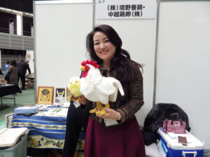 出展した境野養鶏(本庄市新井、境野德夫代表取締役社長)は、全鶏舎に水洗と消毒を行う空舎期間を設けて新しい雛を受け入れる「オールイン・オールアウト方式」をいち早く採用。東日本地域を中心に30超の大規模農場を分散配置し、鶏病対策も万全だ。