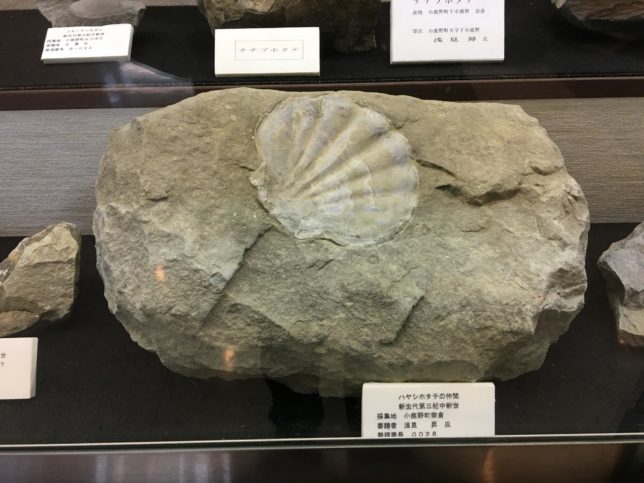 そしてこちらは、約2300〜500万年前の新生代新第三紀中新世のものとされるハヤシホタテ類の化石。今でこそ海から離れている同町だが、ホタテの化石が見つかっているという事実からもこの場所は海だったと容易に想像がつく。