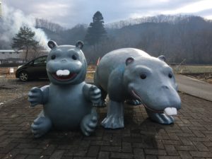 ちなみに屋外には同生物を模したモニュメントもある。漫画にでも出てきそうなデフォルメされた愛くるしい姿が非常にたまらない。