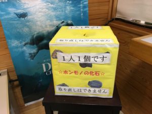 そんな同館、期間限定で来館者に対して本物の化石をプレゼントしている。受付横の箱の中に入っているというので手を入れて取り出してみる。