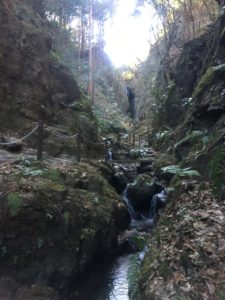そうして、1.5km先の滝を目指して、山道を登っていきます。