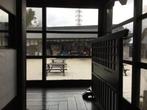 昔ながらの縁側もあり、ガラス戸越しに外の景色を撮るのもまた風流だ。