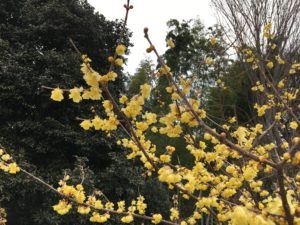 庭園には季節の花木が植えられておりちょうど蝋梅が咲いていた。黄色い花によって今いる場所も忘れてしまいそうなとても心地の良いにおいが辺りに漂う。