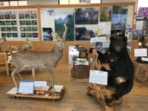 入ってみると目に飛び込んでくるのは、おびただしい数の動物の剥製。鹿や熊をはじめ、タヌキやモモンガなどたくさんの種類を展示しています。