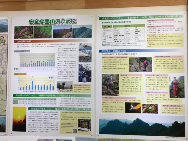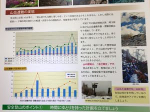 さらに自然だけでなく、登山客が多いことを踏まえて遭難対策に関するパネルも館内にはあります。