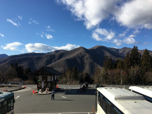 そしてふとバスが停まっている駐車場の後ろを振り返ると、見えてくるのは雄々しくそびえ立つ秩父の山々。