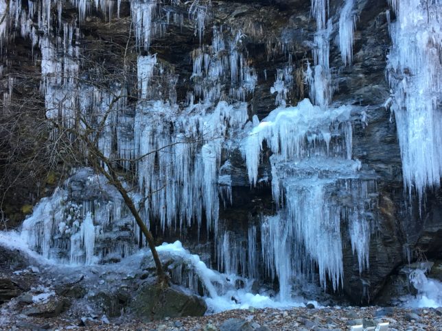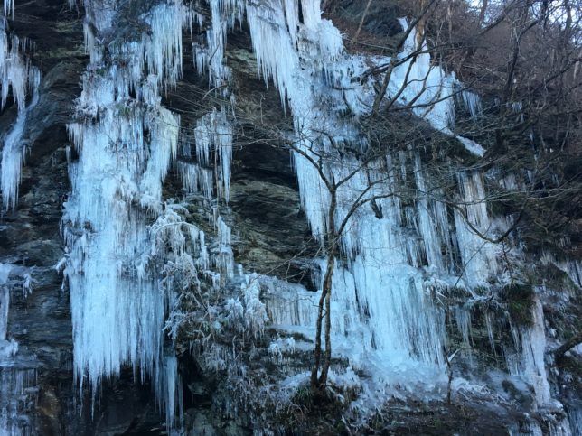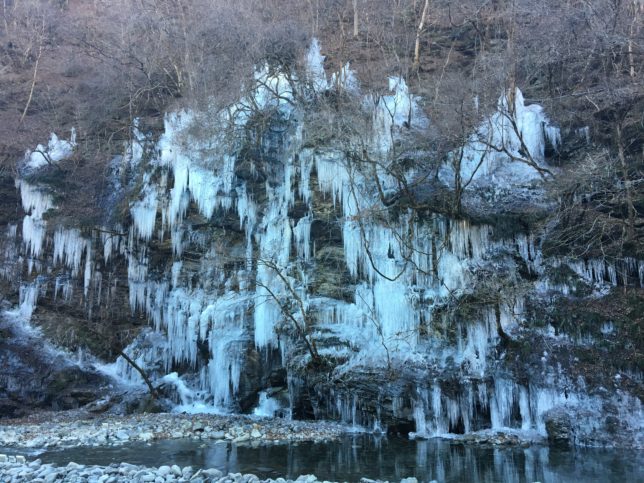 人工とは言え所詮は人が作ったものと侮ってはならない。確かに崖の上から水を流したのは人ですが、凍て付いて氷柱になるプロセスは天然氷柱と全く同じ。