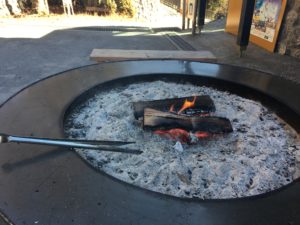 ありがたいことに店頭には、氷柱への来場客に向けた焚き火スペースもあります。
