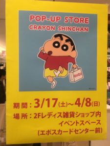 なんと嬉しいことに、4/13に「クレヨンしんちゃん 爆盛!カンフーボーイズ~拉麺大乱~」が公開されることを記念して、期間限定のポップアップストアが、作品の舞台であるここ埼玉の大宮マルイで4/8まで行われております!