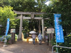 神社の境内には、日本各地から取り寄せたという紫陽花の花約300種類が自生!地元のボランティア団体である「氷川の森花の友」の皆様が管理を行っております。