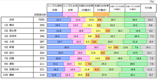 大宮と浦和はいずれも子育て世帯に人気があることがわかります。東京近郊にありながら家賃や土地も安く、教育や交通とインフラが揃っていることが人気の背景にあると考えられます。