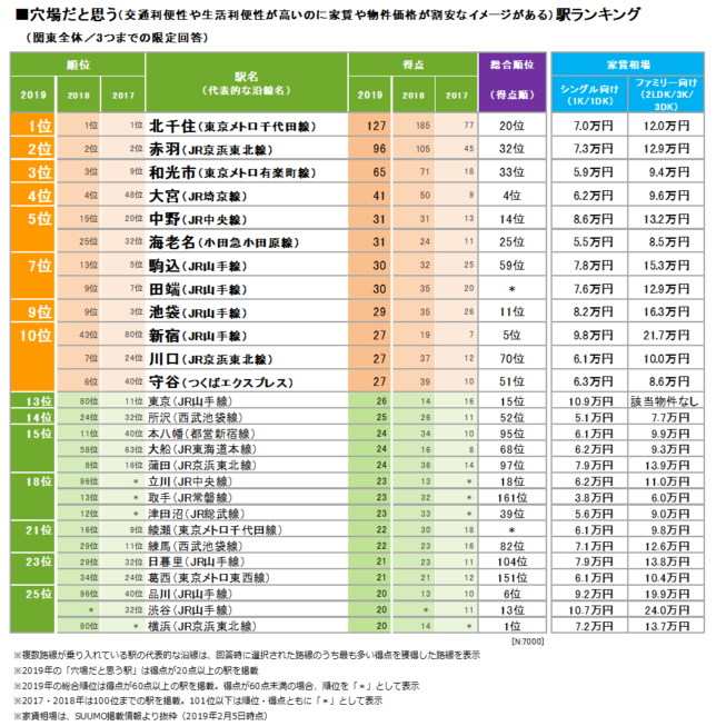 この結果を見ると3位に和光市、4位に大宮、10位に川口、14位に所沢と埼玉県内の駅が多くランクインしているのがわかります。