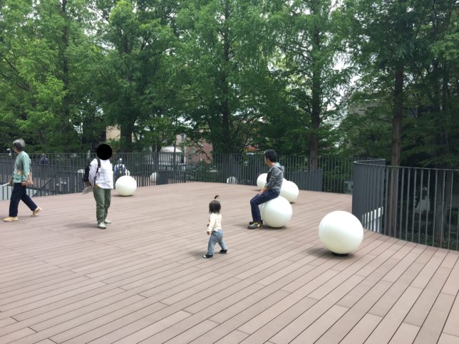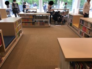 そしてこの階にはテラスがあり、ドアを開けると氷川の杜の緑とその木々を伝って流れてくる心地よい風がなんとも言えません。お話会に使われる朗読室やこどもトイレもあり、お子様の読書の時間が充実すること間違いでしょうね。