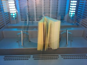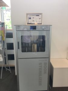 こちらは中に本を入れると30秒ほどでその本を消毒してくれるという機械。多くの人が触れた本に触れるのに抵抗がある方もいらっしゃると思いますが、これなら安心して図書館を利用できそうです。