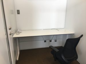加えて隣にはパーテーションで囲われた研究席も8席ほどあります。電話も用意されていることから執務スペースとしての利用も想定しているのでしょうか。