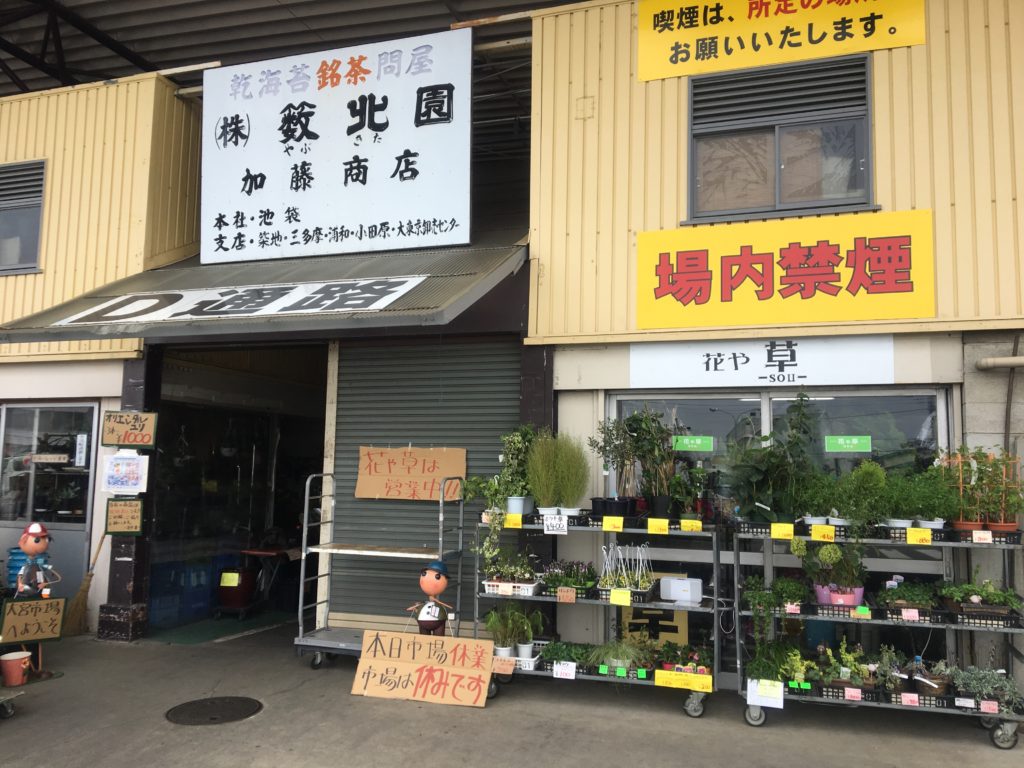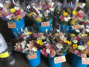 そんな中で、市場の正面に唯一空いていたお花屋「ムトウ生花」様が