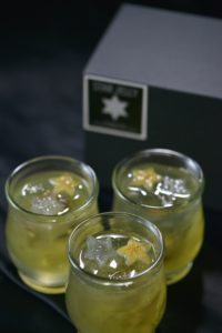 埼玉県内の地酒を使い、濃厚な日本酒の味と風味が特徴。レモンピール・琥珀糖・銀粉を散りばめ、中には焼き栗を入れてアクセントにしている。