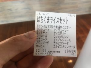 今回注文したのは、言わずもがなのハチクマライス。単品ですと¥880ですが、¥200でドリンクがつきます。