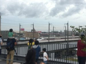 新幹線が迫る音がすると、皆さん釘付けですね。