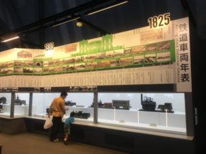 以前本館2階には鉄道歴史年表として、鉄道の歴史を示す史料を展示していたのですが、南館3階にできた歴史ステーションに大多数のものが移されたため、新たに鉄道車両年表が設けられました。
