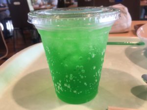 コーヒーやジュースから選べるのですが、メロンソーダにしちゃいました。