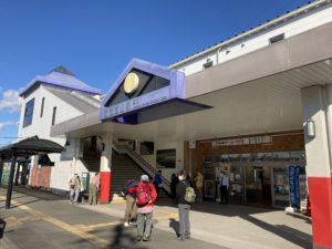 朝の10時頃だが、同駅で降り立った者の多くが帽子を被りリュックを背負った観光客だった。ちょうど東武鉄道主催の健康ハイキングの開催日で、多くのハイカーが同駅の受付から歩き出した。穏やかに晴れた日で絶好のハイキング日和だった。