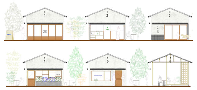 No.5は本格的なキッチンを備えたシェアキッチン棟で飲食店や料理教室などに対応、No.6は半分屋外の抜けのあるオープンスペースで地域の催事やフリーマーケットなどに対応。