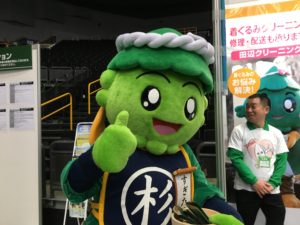 ブースには同町マスコットキャラクターのすぎたろうも駆けつけた。