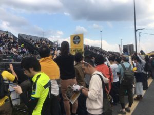会場入ってすぐのところに待ち構えていたのは、大会のスポンサーにしてディアパートナーであるJCOMのキャラクターざっくぅです