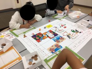 実際にコマを進めるごとにおこづかい帳に残高を計算して書き込むため、参加しているお子様の表情は真剣そのものです。