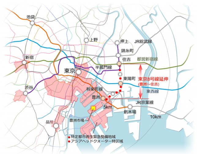 その南では、半蔵門線の住吉駅から、途中東陽町を経由して、有楽町線の豊洲まで約5キロを結ぶ、いわゆる豊住線計画も存在しています。